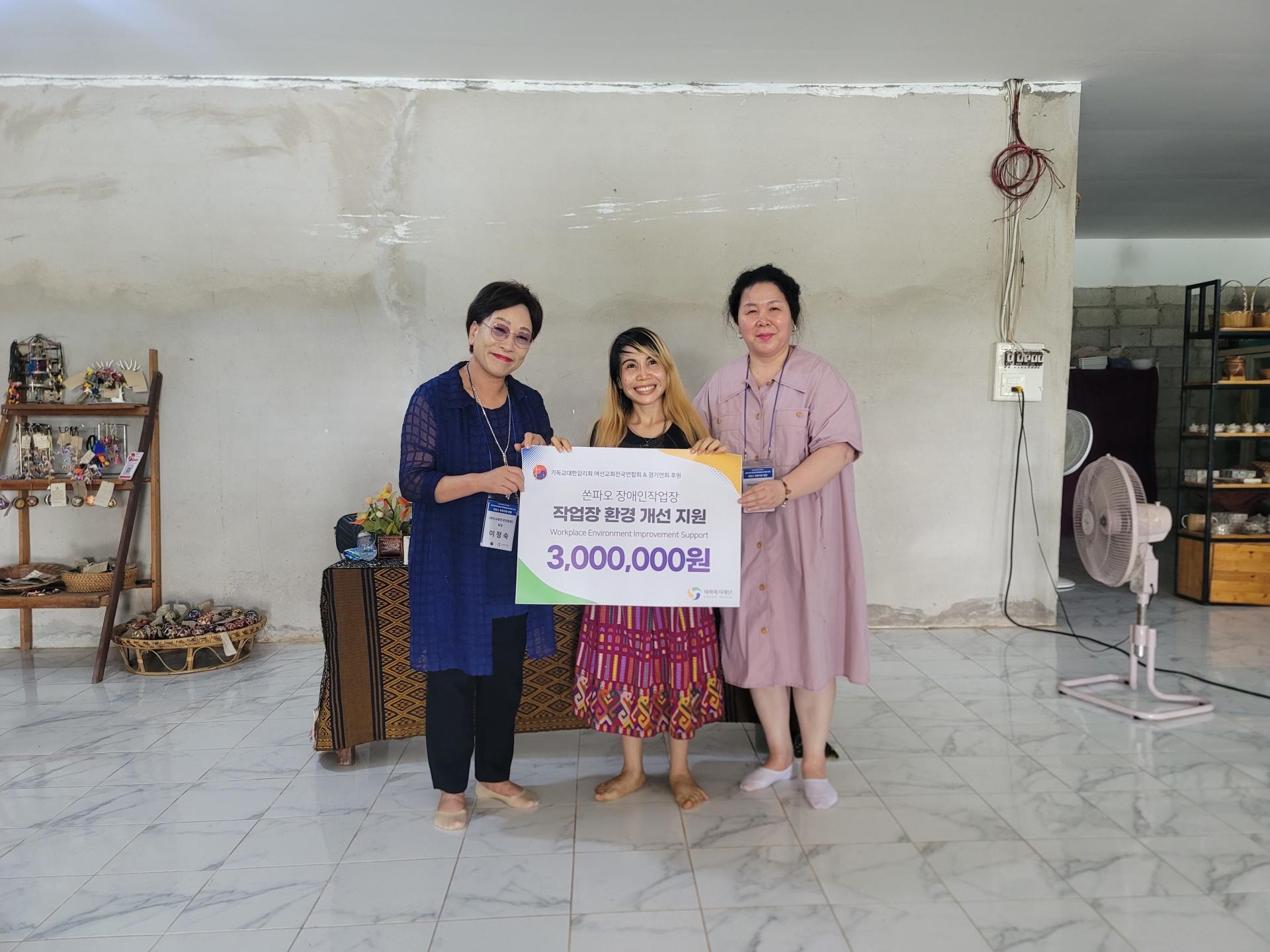 이번 방문은 여선교회경기연회연합회에서 라오스 여성 장애인을 위해 태화복지재단에 1,000만원의 후원금을 약정하고, 이를 전달하기 위해 이루어졌습니다. 후원금 중 700만원은 라오스 여성장애인협회의 재봉 교육생 양성을 위해, 300만원은 쏜파오 장애인작업장의 환경 개선을 위해 사용될 예정입니다.