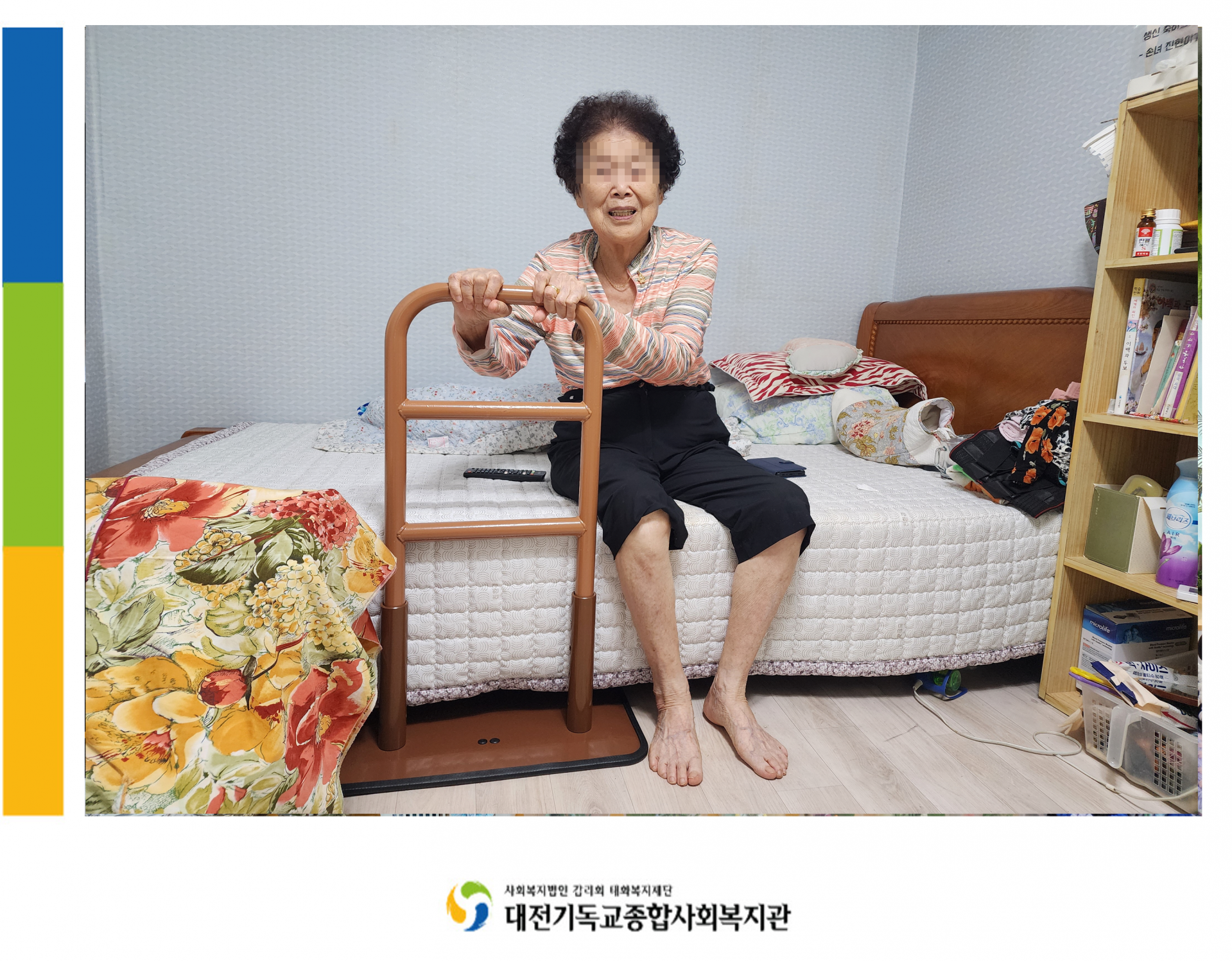 ▲ 복지용구를 받고 밝게 웃으시는 어르신