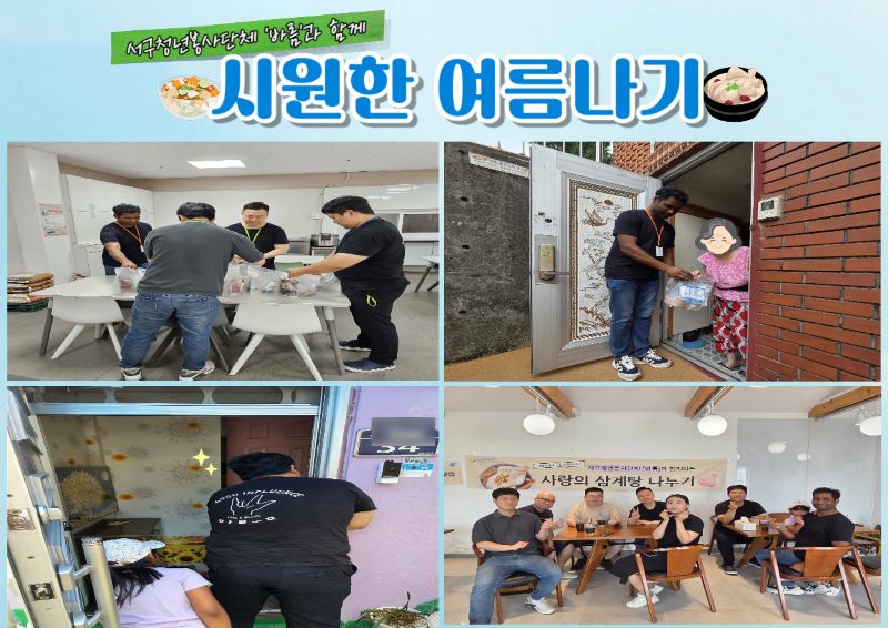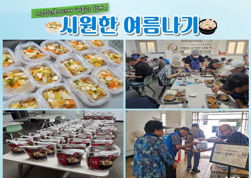 또한, 말복에는 서구청년봉사단체 ‘바름’의 삼계탕 후원과 봉사활동이 함께 이어졌습니다.