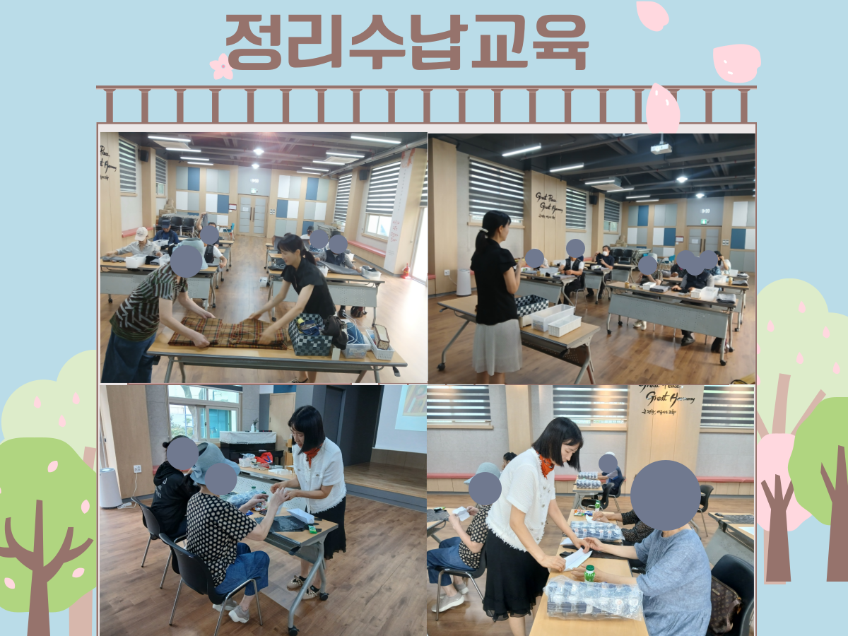 가을의 문턱인 지난 9월 11일, 18일에 주거상향지원사업 참여자 10명을 대상으로 정리수납교육을 2회에 걸쳐 진행하였습니다.