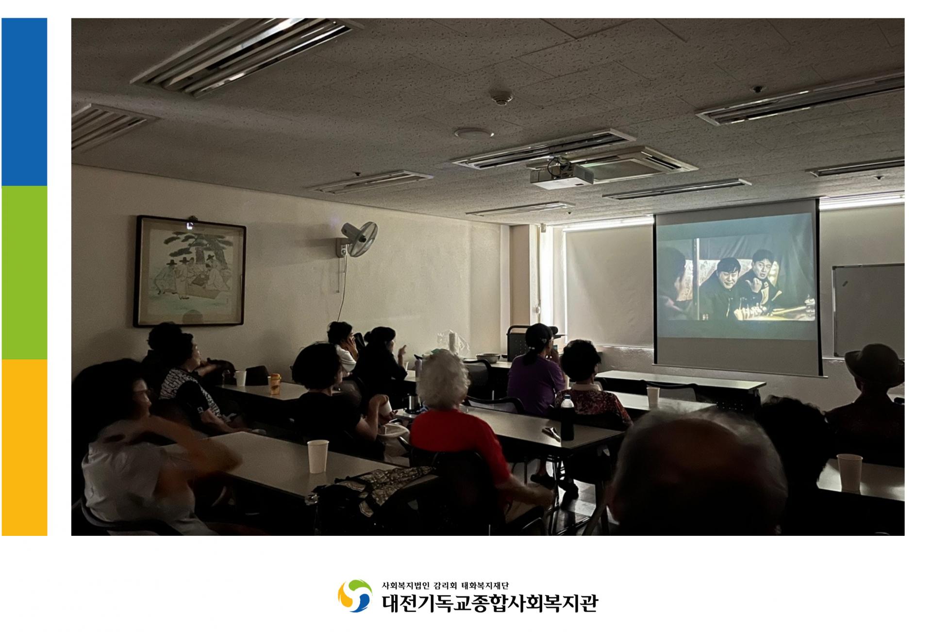대전기독교종합사회복지관에서는 한 달에 한 번 ‘영화와 다큐’ 프로그램을 진행하고 있습니다. ‘영화와 다큐’는 소소한 간식과 함께 영화를 관람하고, 관람 후 이야기를 나누는 프로그램입니다. 최근에는 <4등>이라는 영화를 관람했습니다. 수영 선수가 주인공인 이 영화는 무더운 여름과도 잘 어울렸습니다.