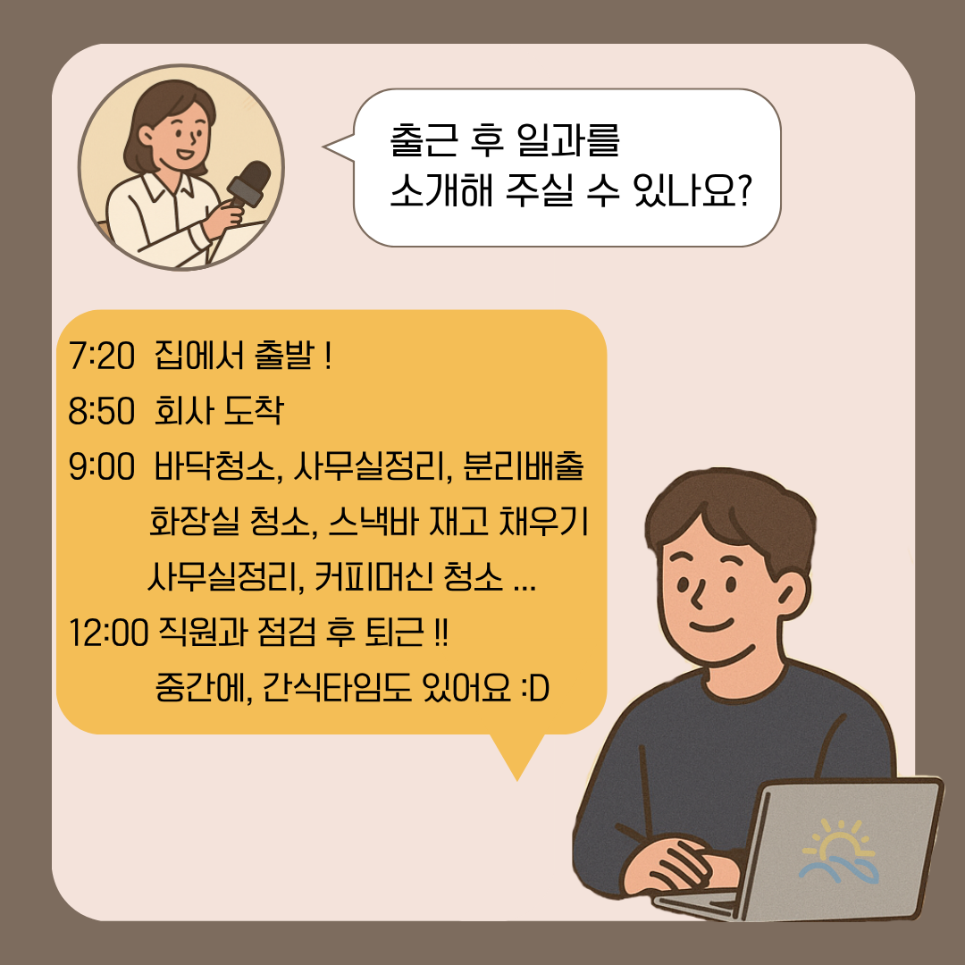 수현님의 멋진 활약 덕분에, 계약기간이 끝나면 다른 회원분들도 도전할 수 있는 일자리도 생겼답니다.