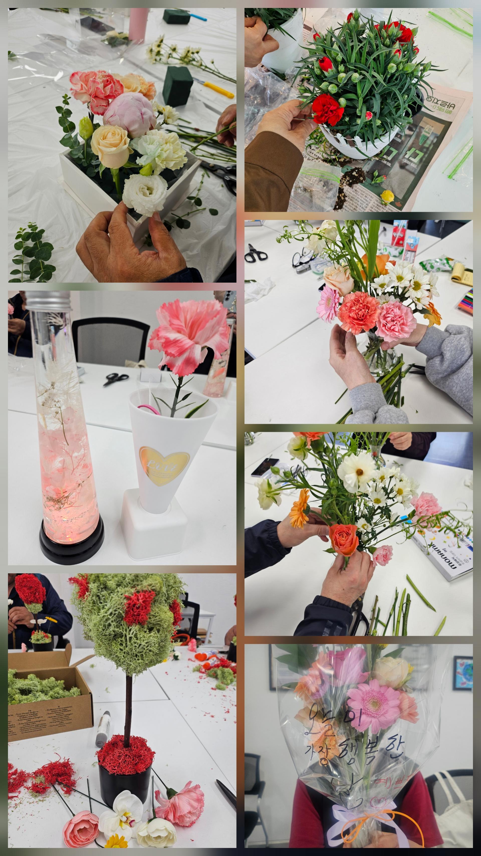 이번 회복지원프로그램은 원예활동으로 구성되어 ▲나만의 반려식물 키우기 ▲생화 센터피스 ▲화병 꽃꽂이 ▲꽃바구니 ▲스칸디아모스 ▲하바리움 만들기 등 다양한 활동이 진행되었습니다.
