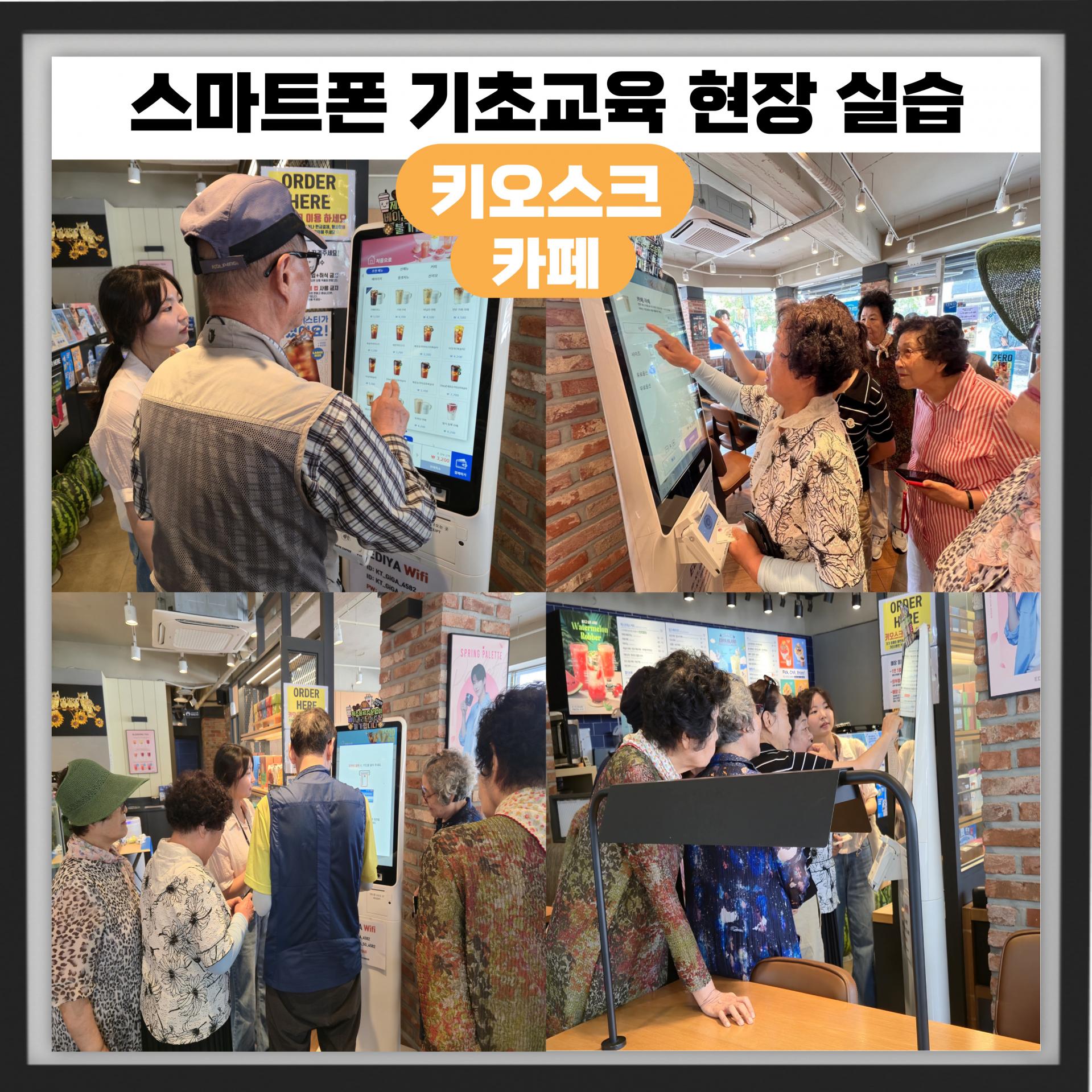 수업 시작 전부터 키오스크 관련 교재를 먼저 관심있게 보며 예습하고, 강사님과 앱으로 연습 후 복지관에서 근처 카페까지 길찾기 앱을 활용하여 직접 찾아갔습니다!