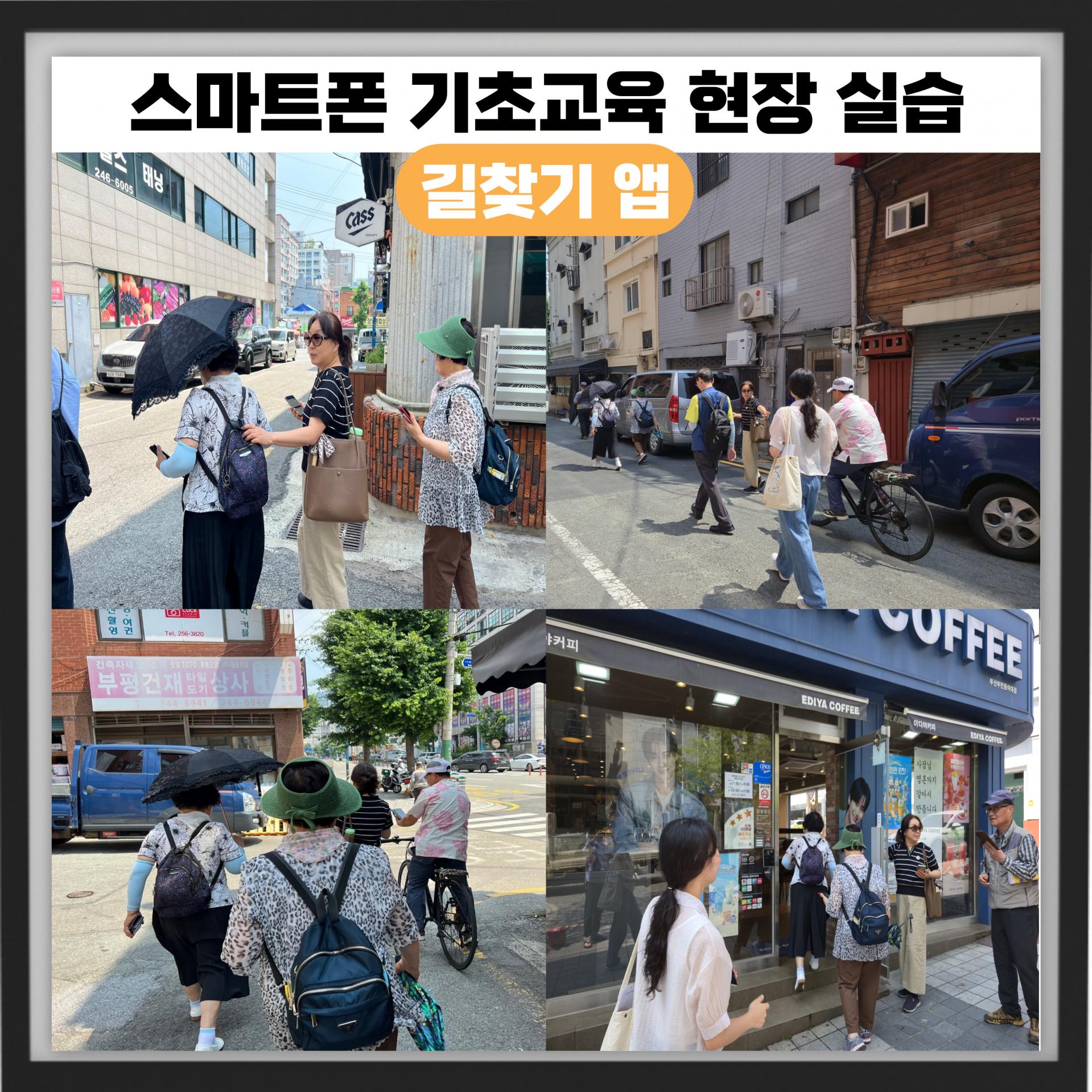 매주 화요일마다 오셔서 스마트폰 교육에 참여해주시는 참여자 분들이 어제는 교육을 받고 직접 현장실습을 하였습니다!