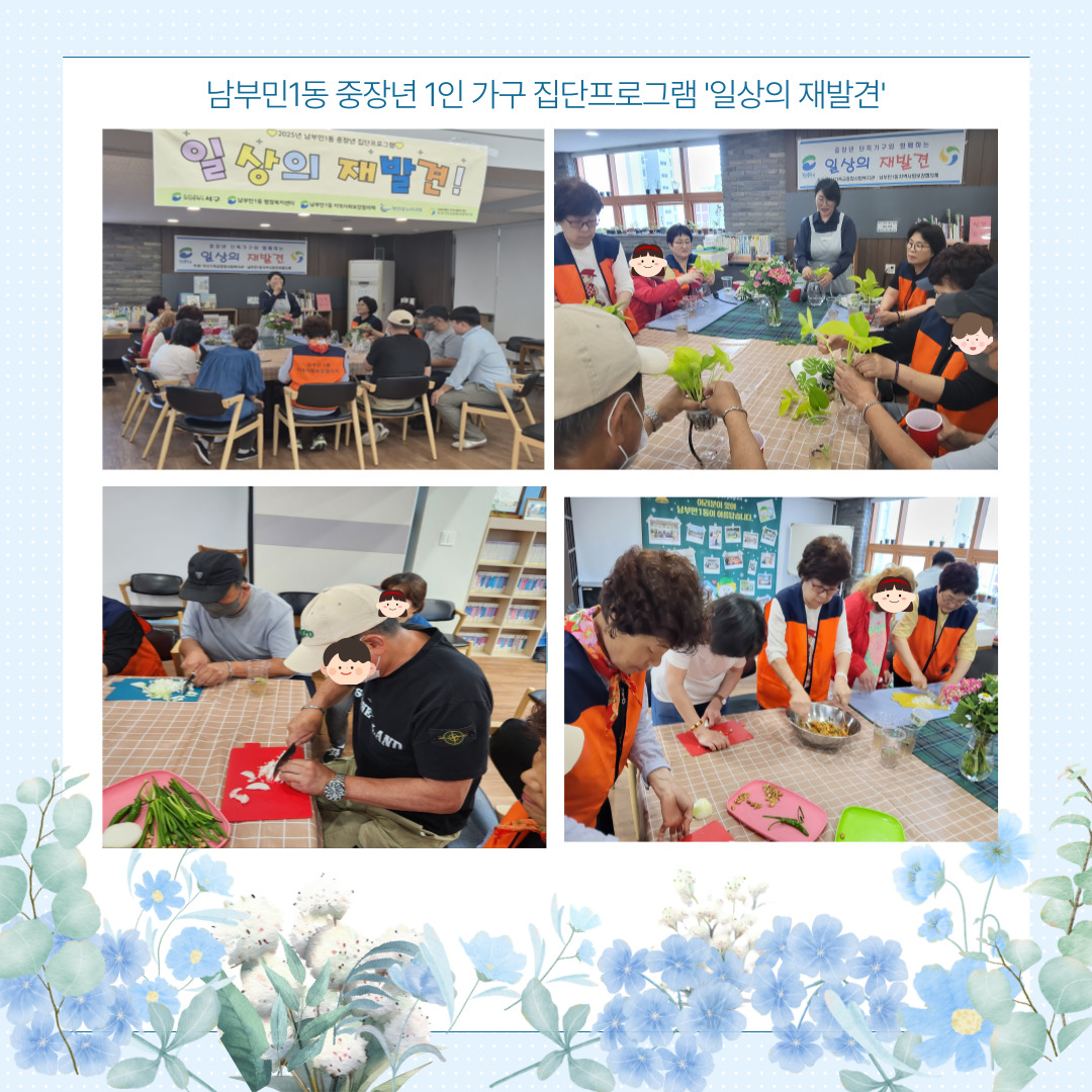 지난 6월 9일, 남부민1동 중장년 1인가구의 사회적 고립감 완화 및 정서적 안정을 도모하기 위해 우리마을 집단프로그램 1회기가 진행되었습니다.