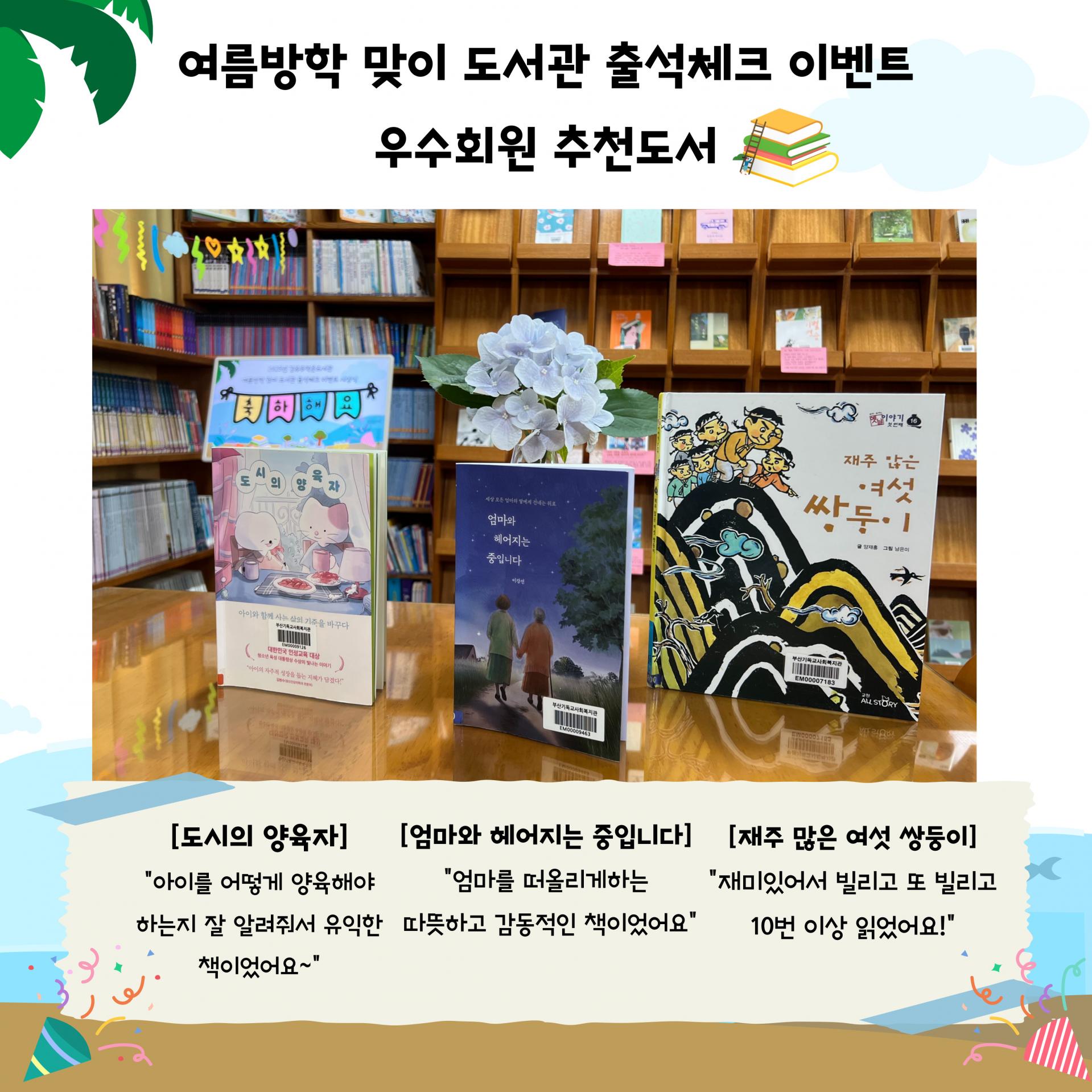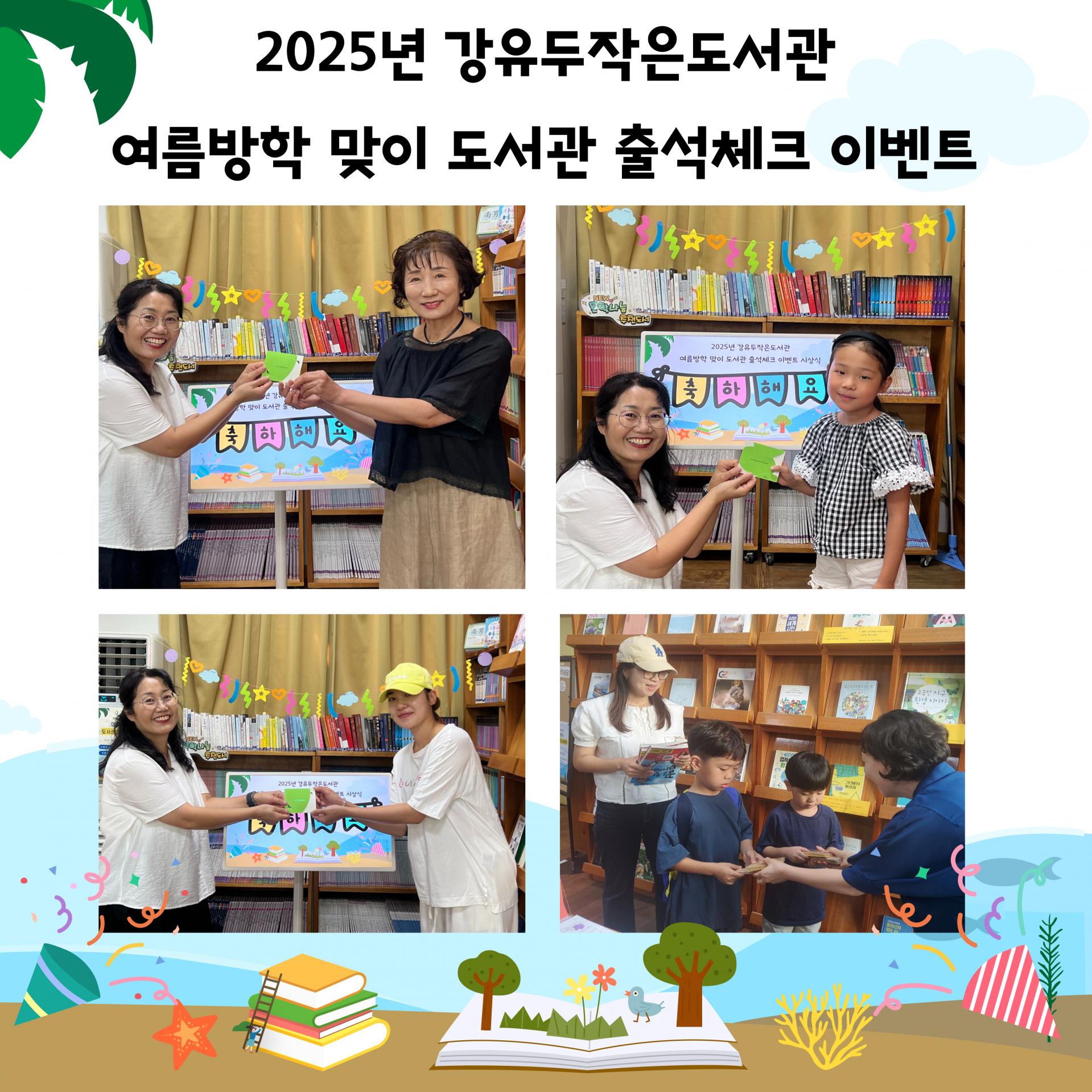 7월~8월 두 달간 강유두작은도서관에서 여름방학 맞이 도서관 출석체크 이벤트가 진행되었습니다!