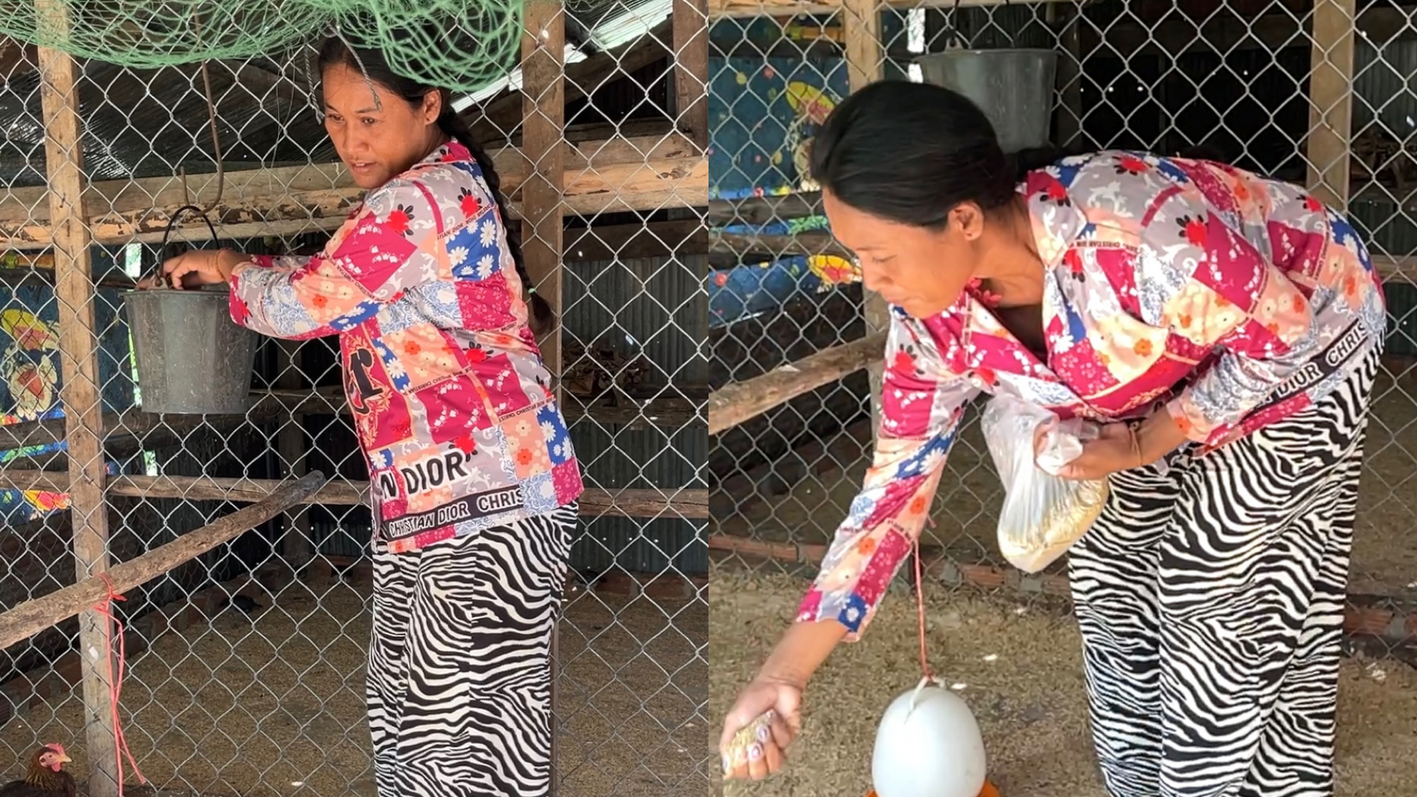 ▲촘씨나씨의 아내가 닭을 돌보는 사진