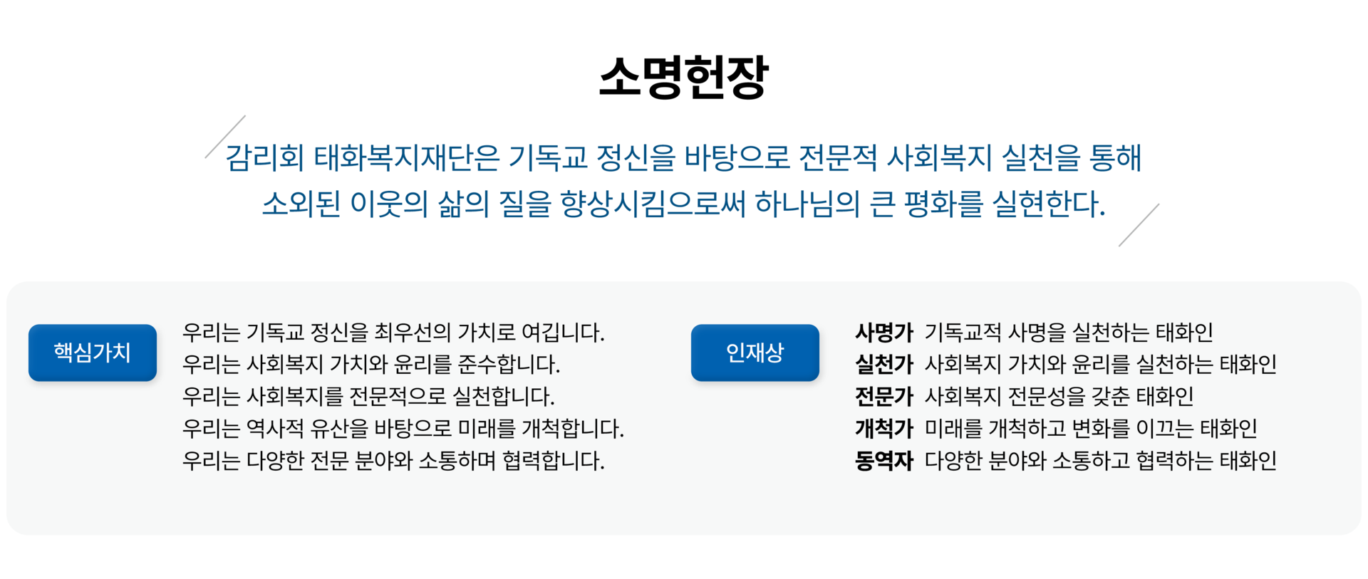 우리는 기독교 정신을 최우선의 가치로 여깁니다.