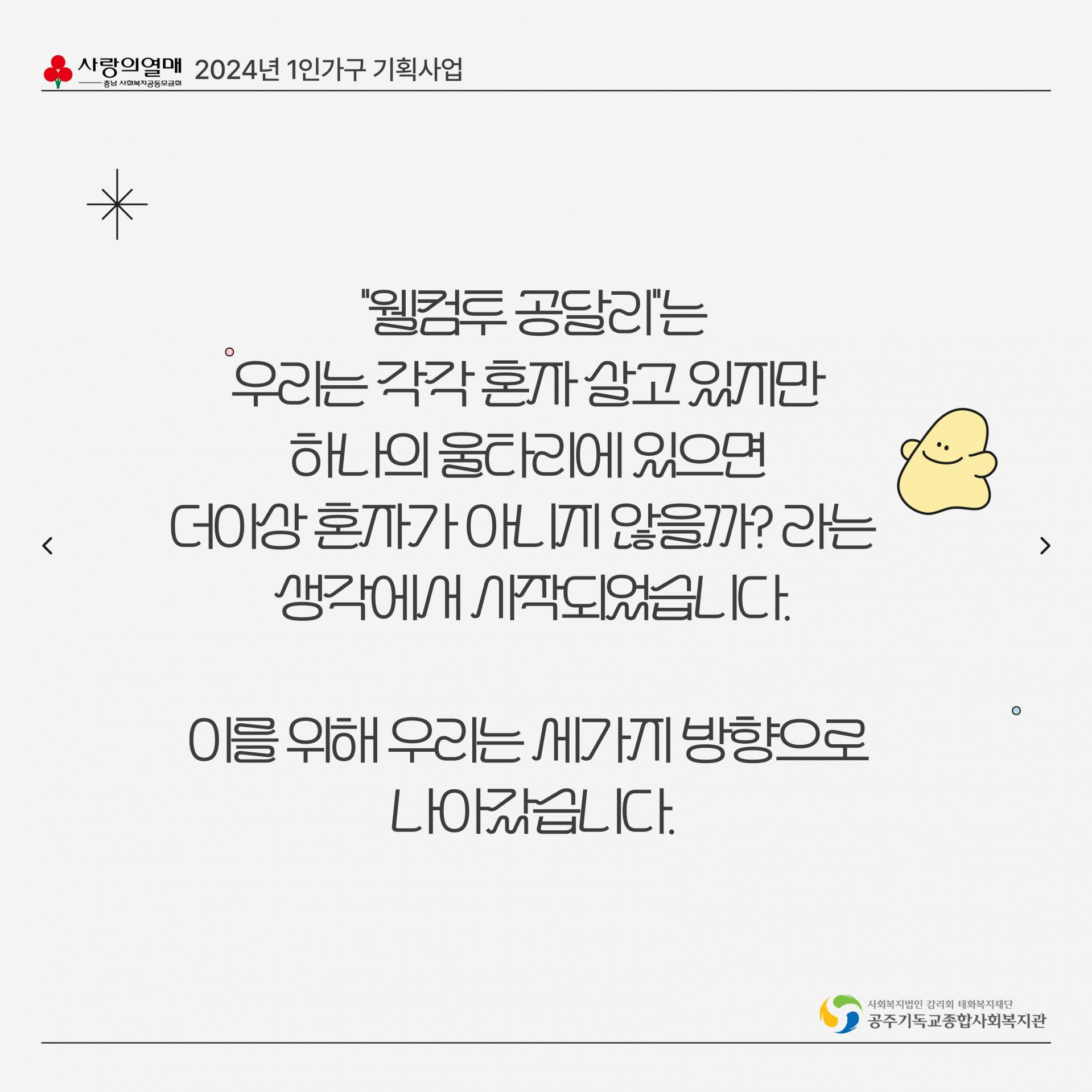 ▲ 서비스제공기능사업 충남사회복지공동모금회 24년 기획 1인가구 통합지원사업